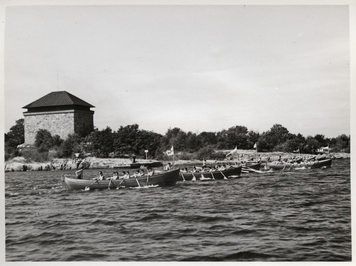 Titel: Tävling med roddarlag. Förmodligen utanför Ljunskär.