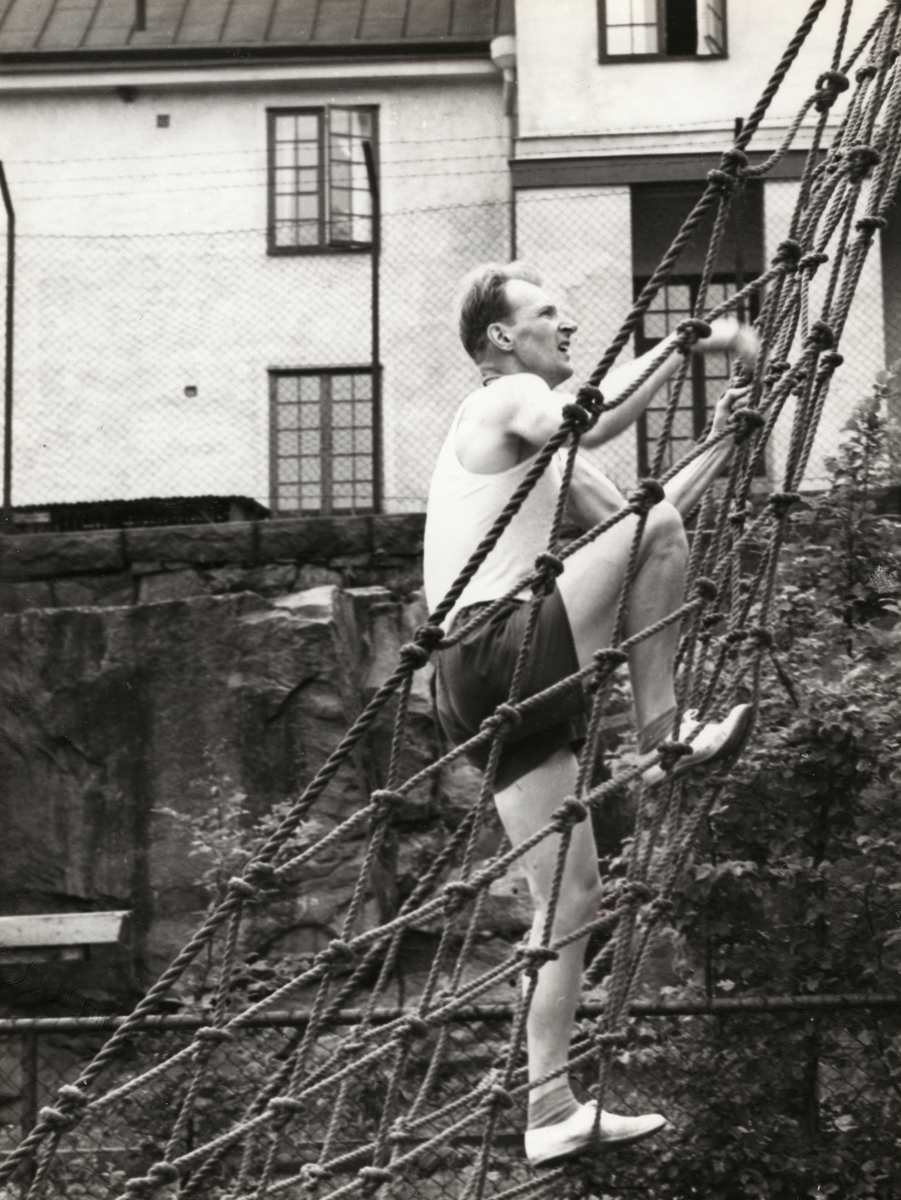 Titel: Man klättra i nät.