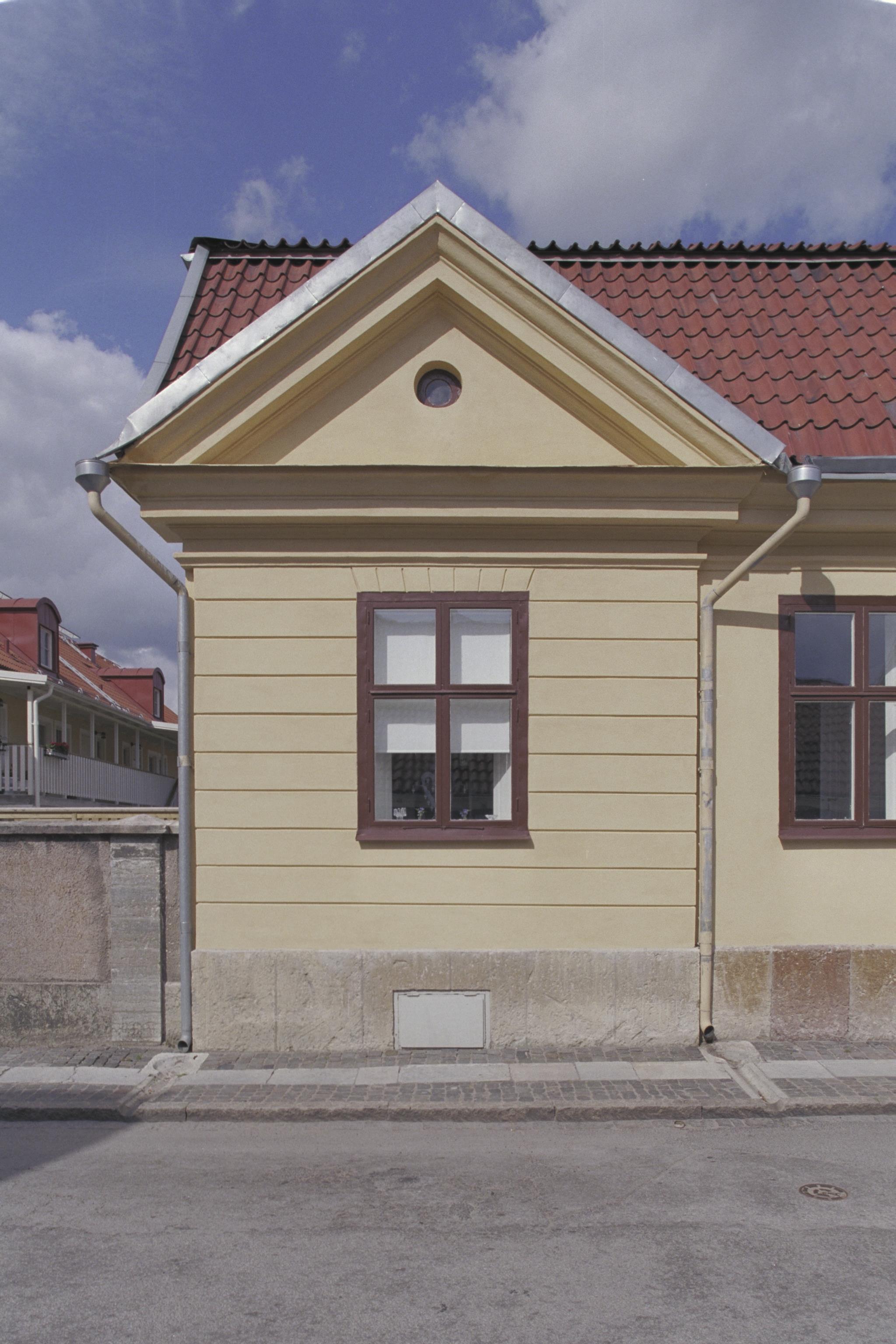 Stenhusets östra fasad, Västra. Skolgatan. Tillbyggnden i söder.