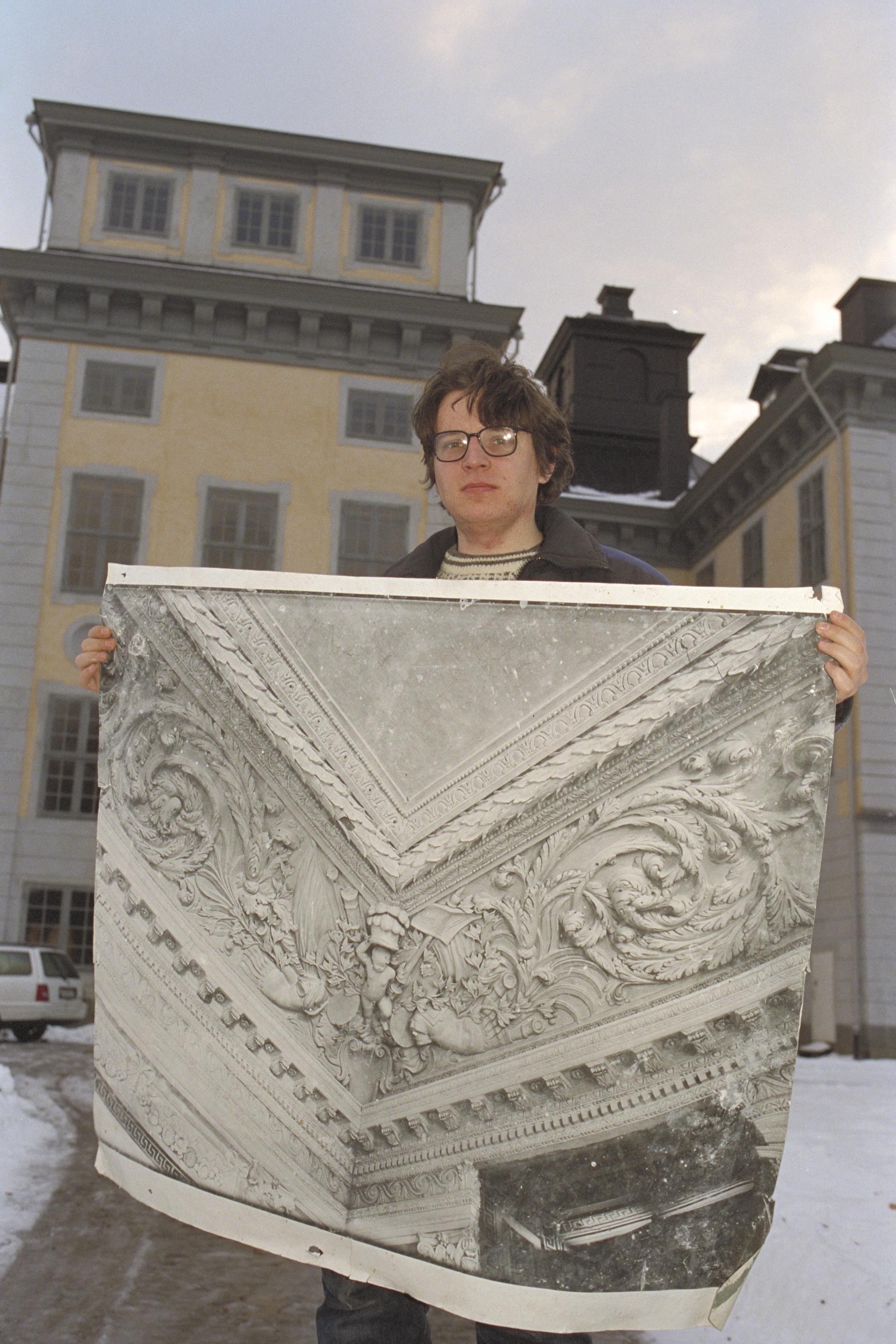 Fotoförstoring från 1930-talet. Hjälpmedel vid rekonstruktionen av takstuckaturen.