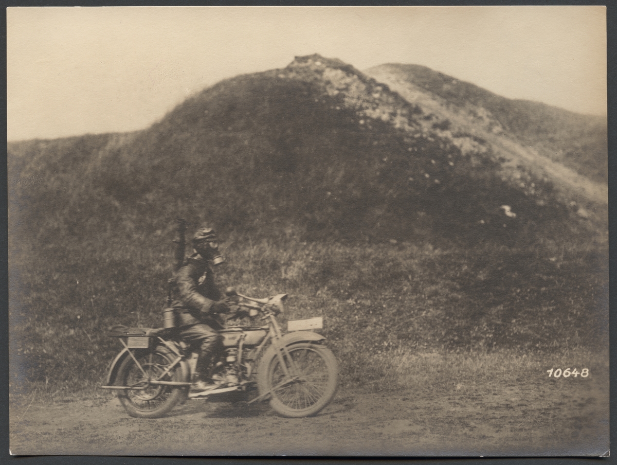 Titel: Motorcyklist med gasmask