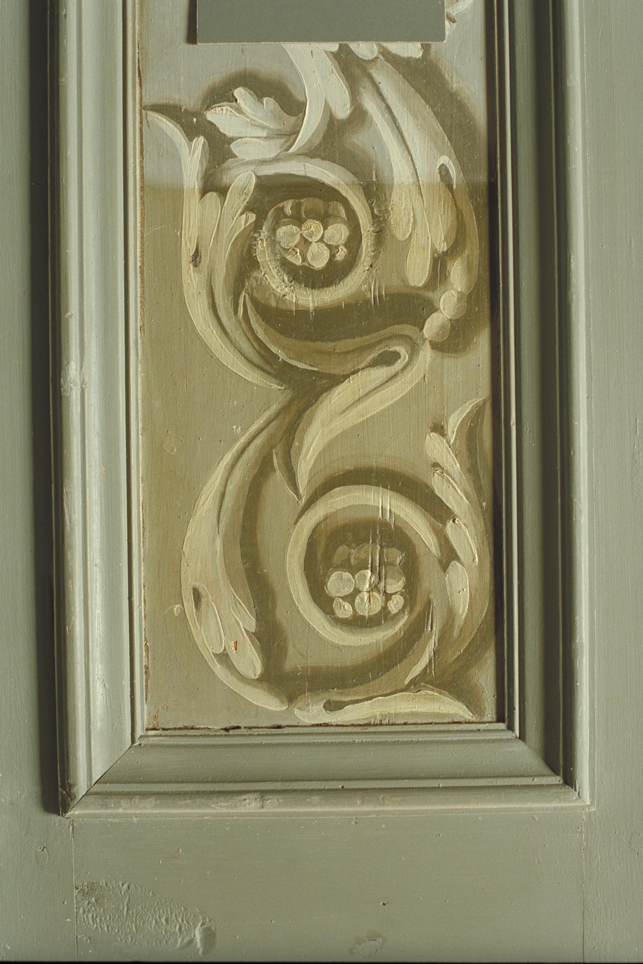 Rum 3K, nordvästra fönstret. Fönstersmygfyllning med fernissa.