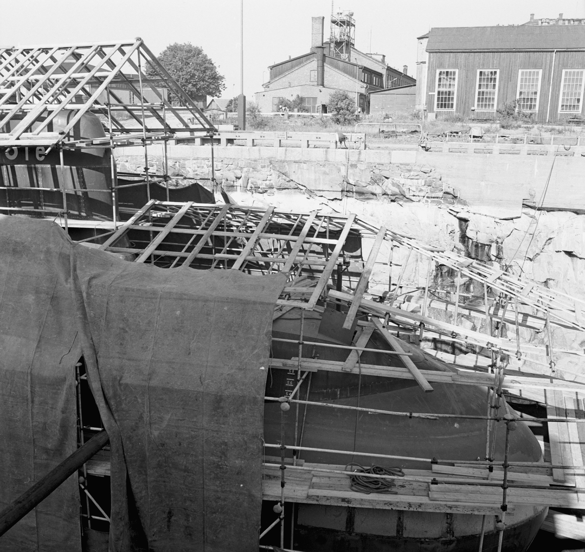 Ställningar runt ubåten Sjöbjörnen i oscarsdockan