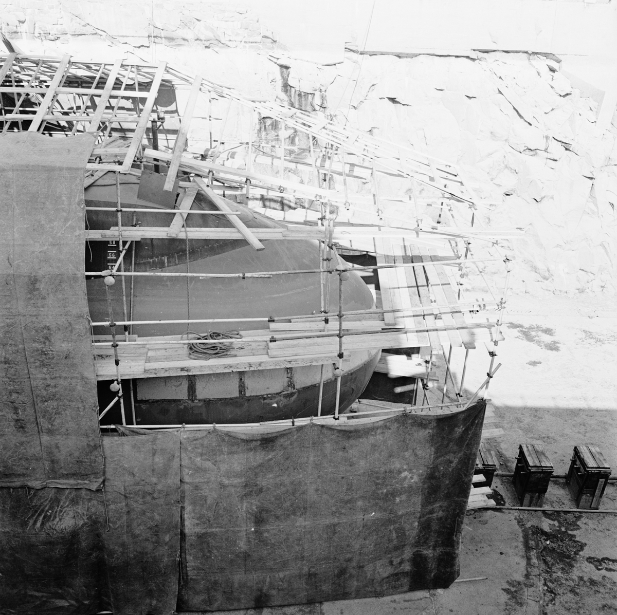 Ställningar runt ubåten Sjöbjörnen i oscarsdockan