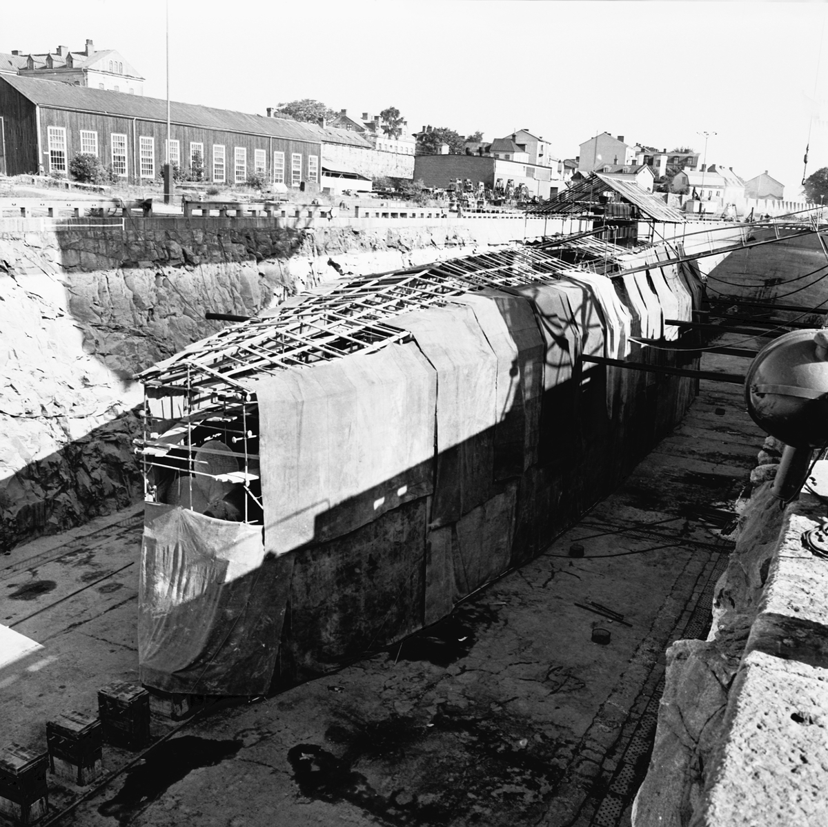 Ställningar runt ubåten Sjöbjörnen i oscarsdockan