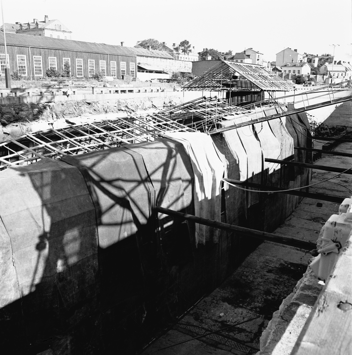 Ställningar runt ubåten Sjöbjörnen i oscarsdockan