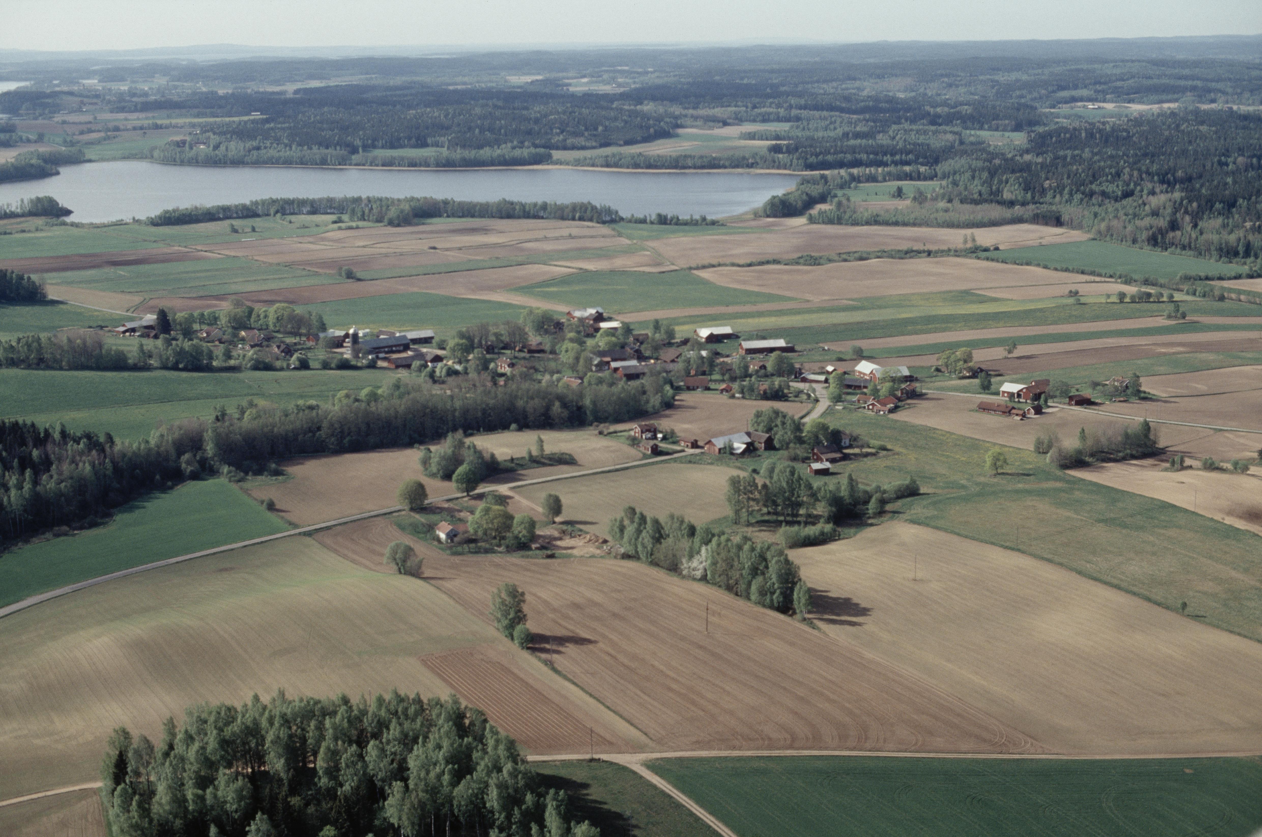 Svinnersta by. Bytomt RAÄnr Snavlunda 262 vid bildens mitt. I bildens övre del sjön Anten. Bilden är tagen mot (väderstreck): S