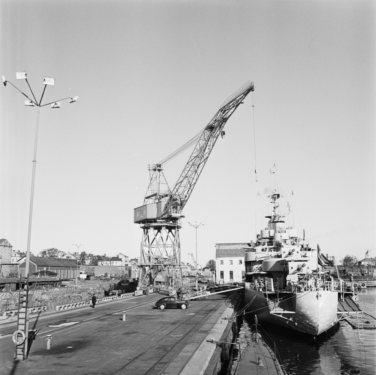 Liggande i hamnen är HMS Älvsnabben M01