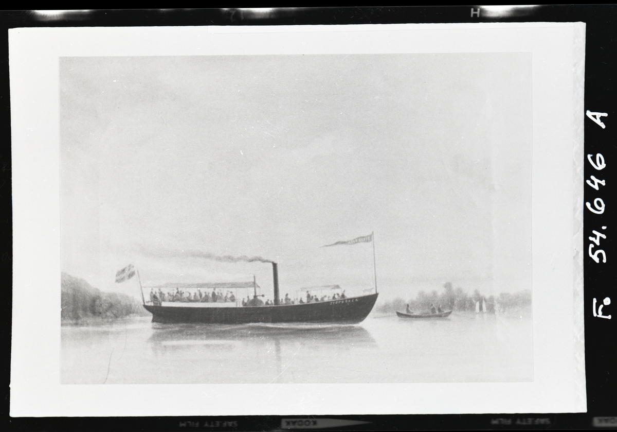 Tavla av ångfartyget SJÖFRÖKEN, målad av Per Wilhelm Cedergren