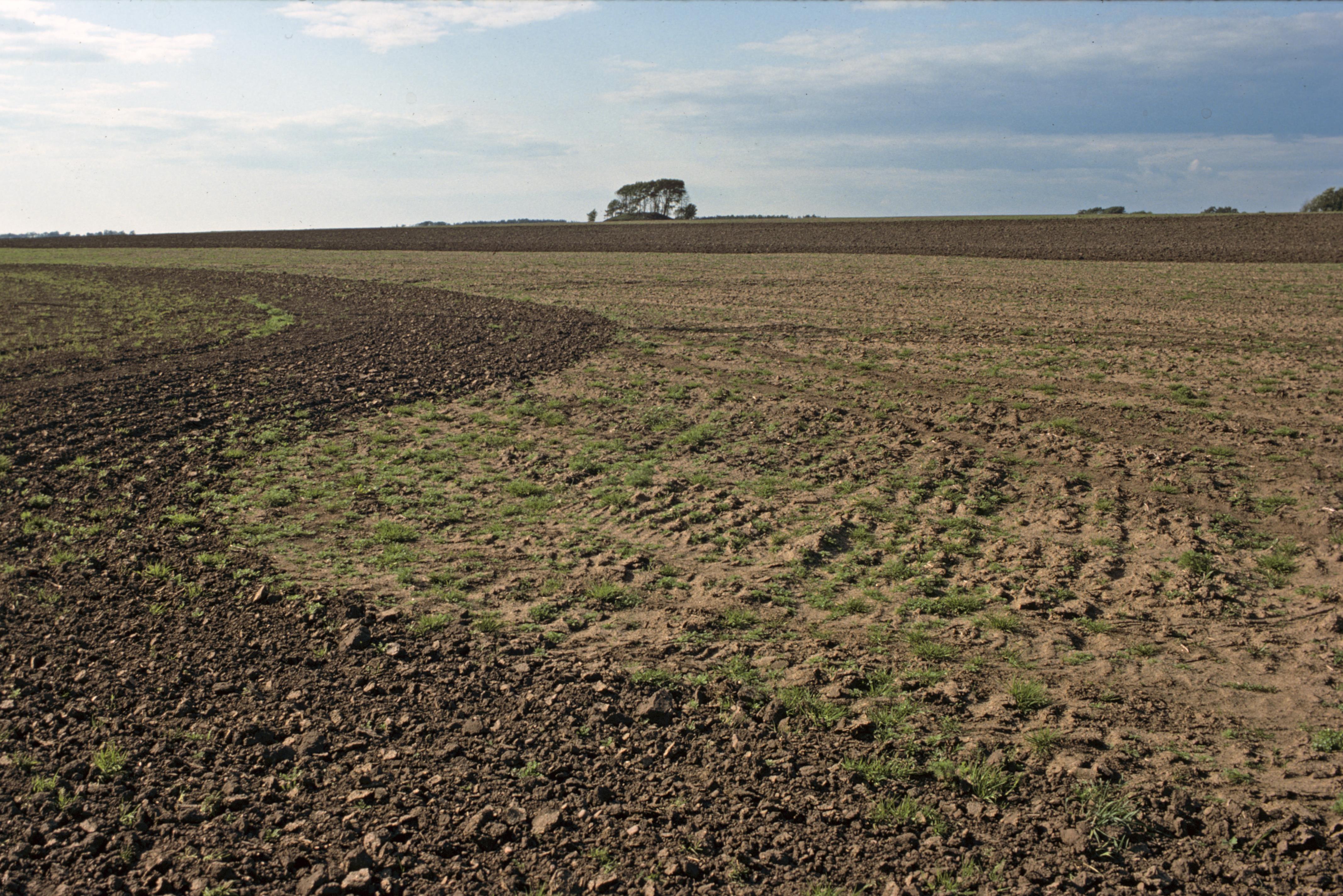 Beskrivning: RAÄ-nummer Laholm 17:1. Gravhögen med omgivande odlingsmark. Bilden troligen från mitten av 1970-talet.