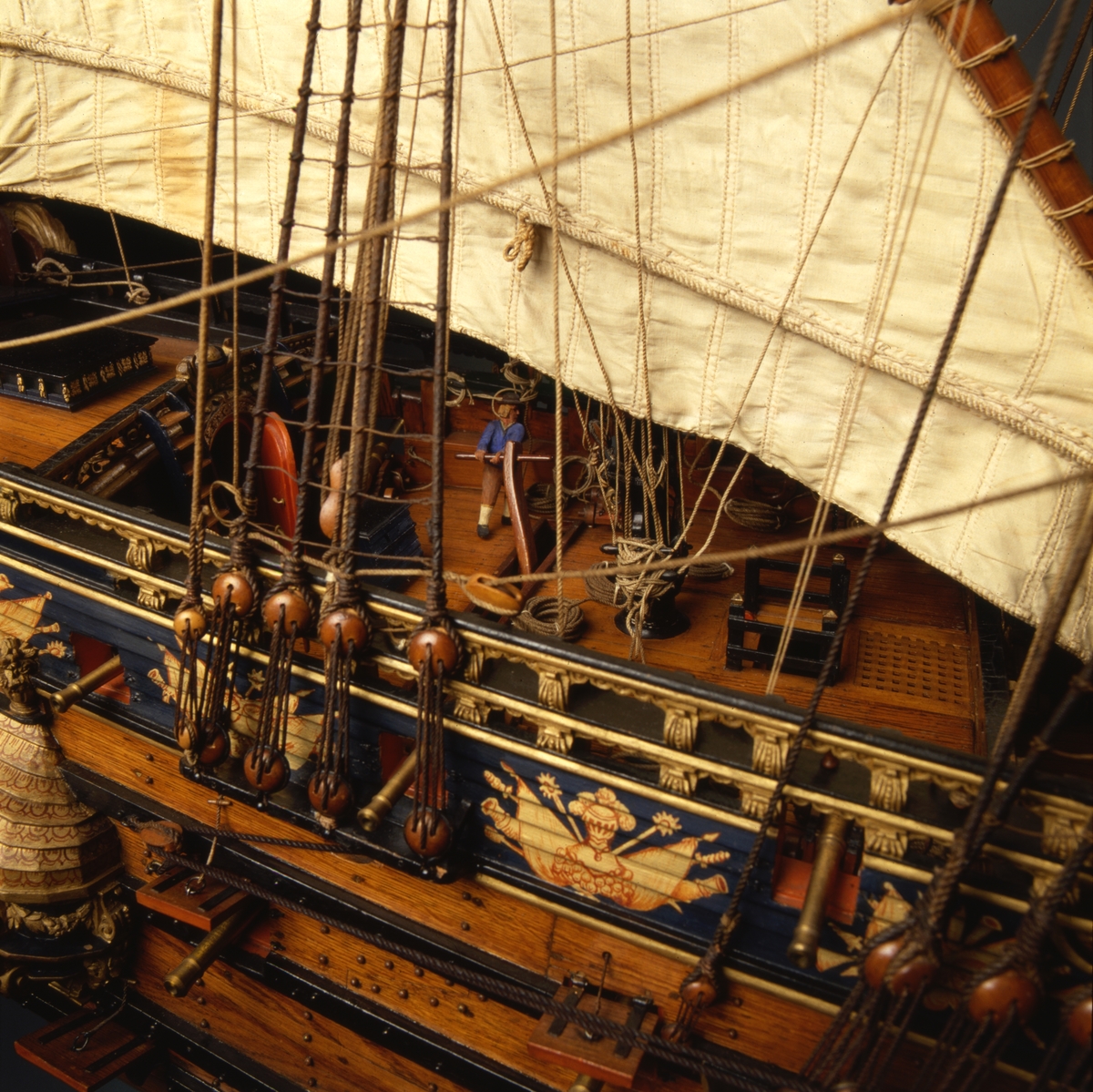 Modellen Ö 4, som antagits föreställa skeppet Amarant. Detalj av halvdäck.