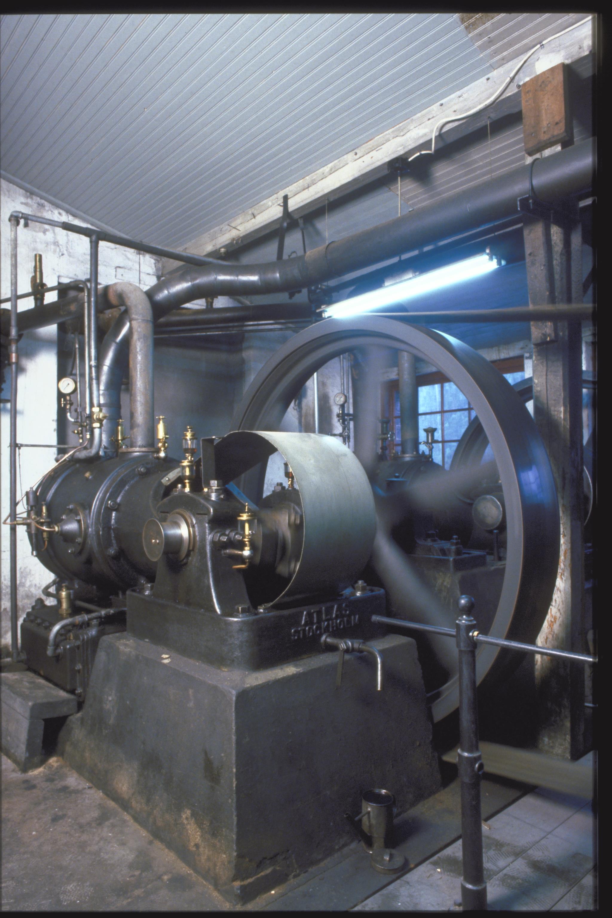Interiör från gruvlaven. Maskindetaljer, ATLAS-kompressor från 1910.