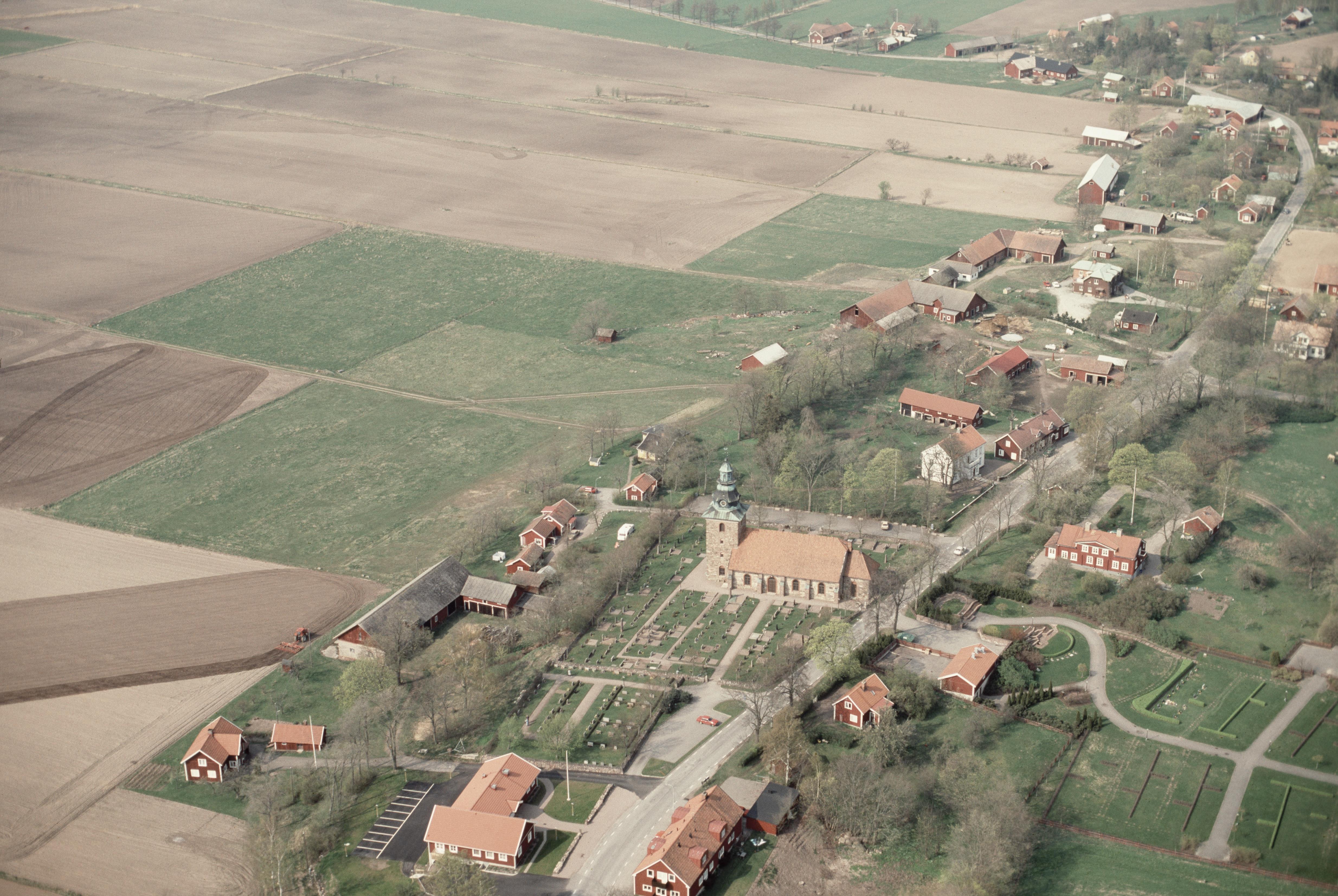 Björsäters kyrka och kyrkby. Bilden är tagen mot (väderstreck): NV