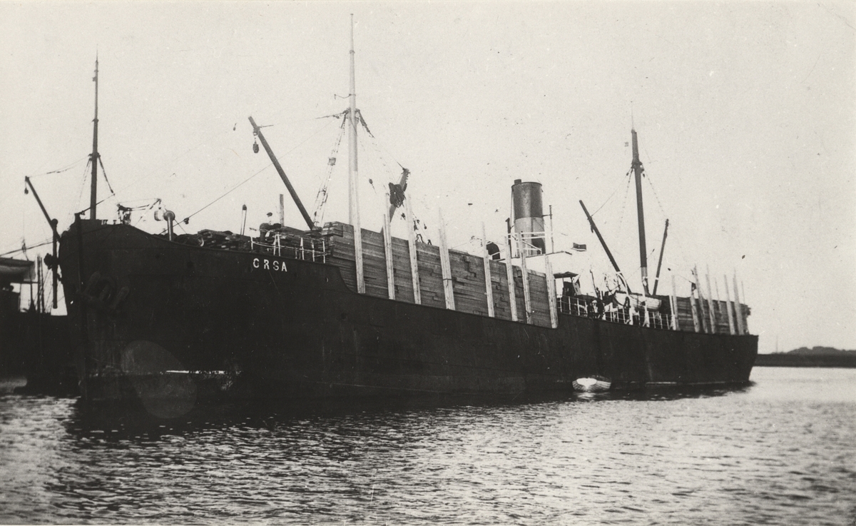 Foto i svartvitt visande lastångfartyget "ORSA" av Helsingborg.
