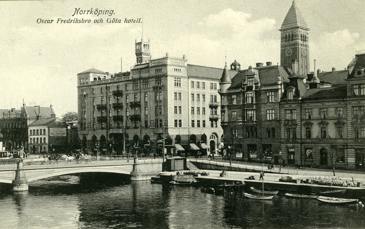 Norrköping. Oscar Fredriksbro och Göta hotell.