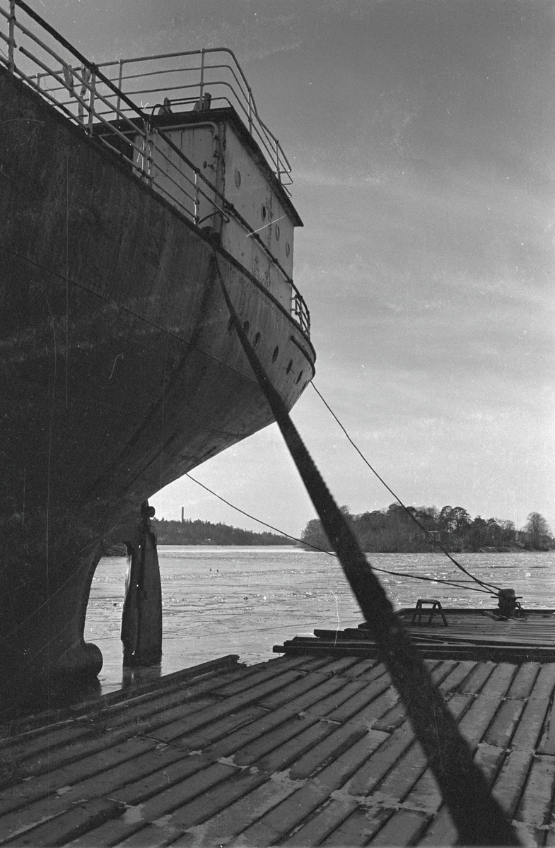 Aktern på pråmen MONARK (urspr. lastångfartyget MASILIA) vid Ekensbergs varv 1969