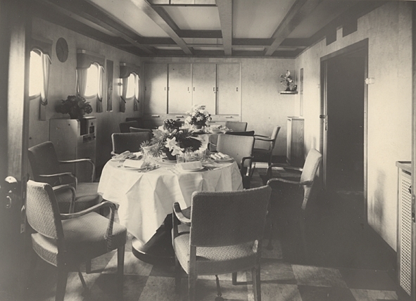 Lastmotorfartyget ASTRI av Stockholm. Matsalong.