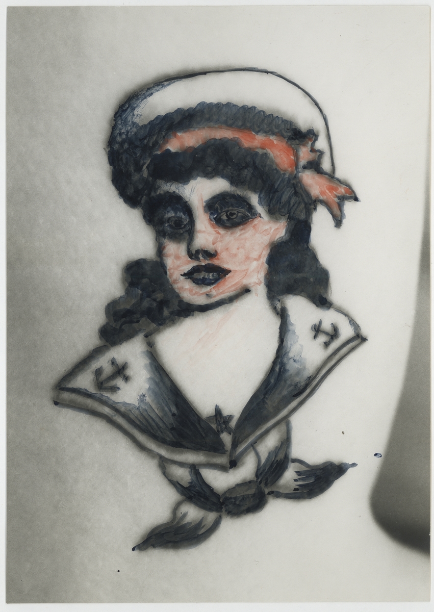 Höger arm elektriskt nålarbete "The bell of Barbary coast", utfört i San Francisco.