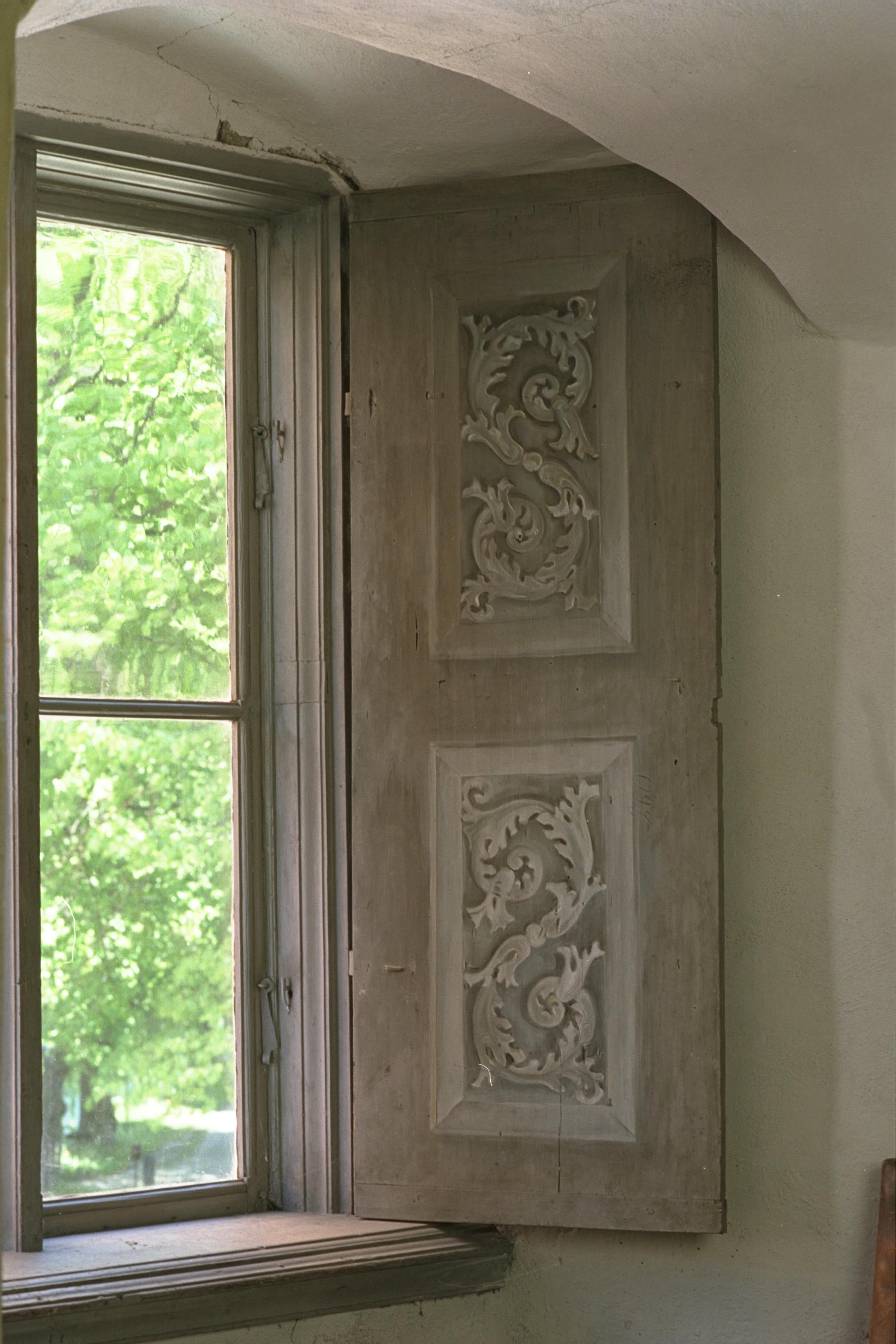 Vasatornet, första våningen, grisaillemålad fönsterlucka.