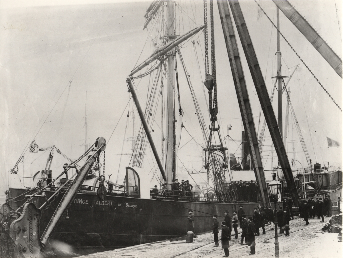 Belgiska statens "PRINCE ALBERT" lastar ombord kanoner för vidare transport till någon av kolonierna.
