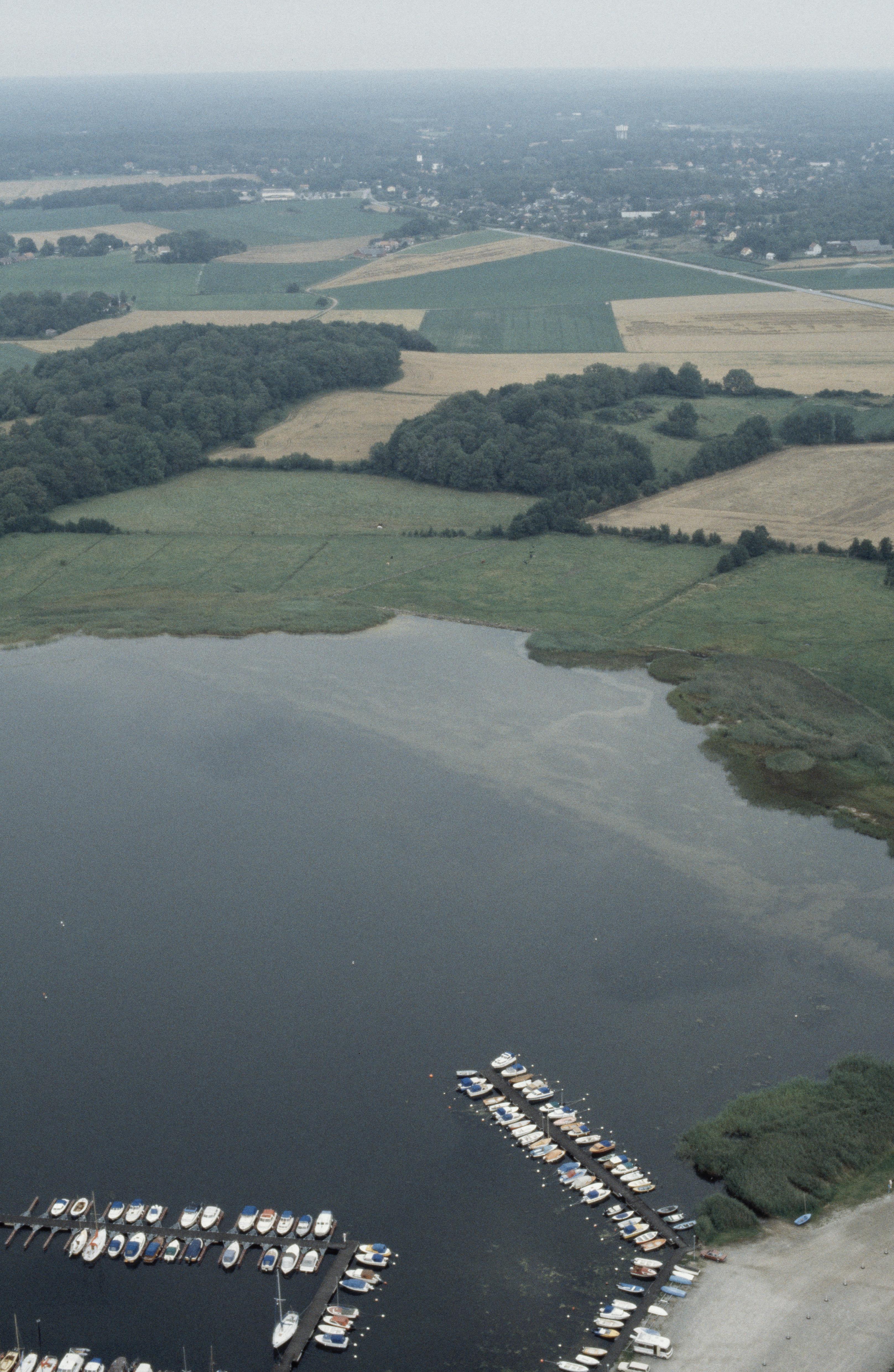 Hallarumsviken. Gravfält och boplats RAÄnr Jämjö 12:1 och 67:1 m.fl. över bildens mitt. Hammarby gård och Jämjö tätort i bildens övre del. Bilden är tagen mot (väderstreck): NO