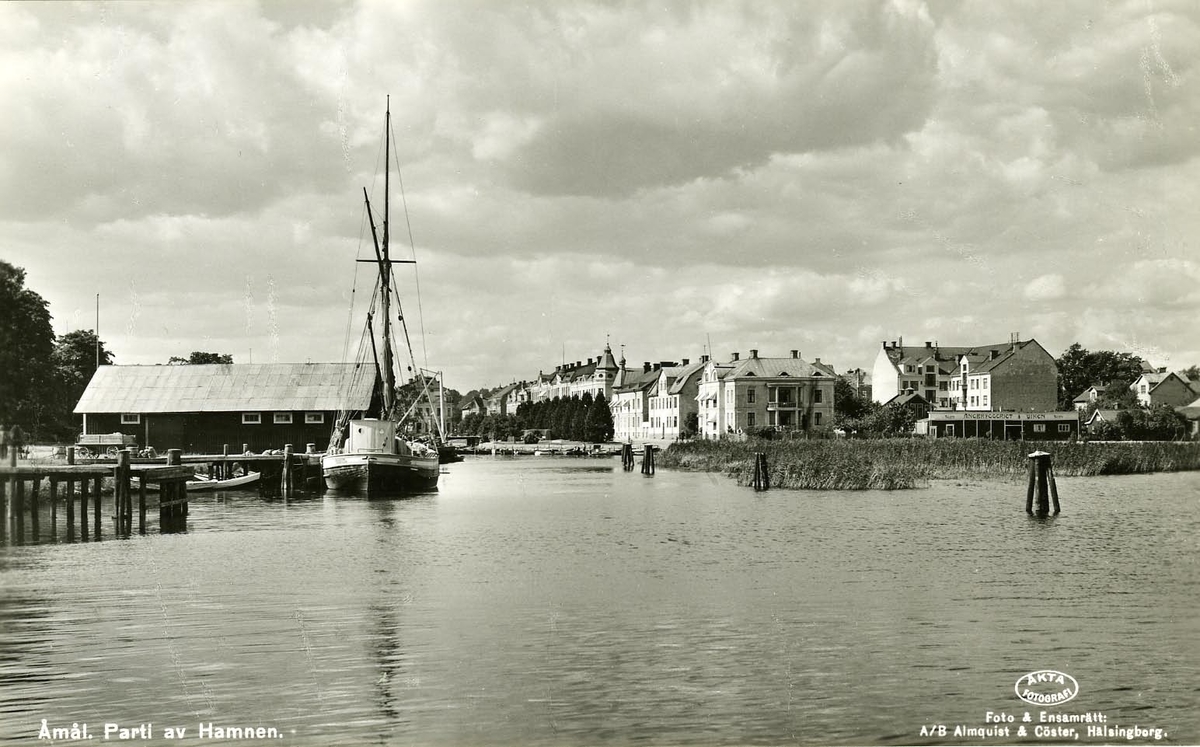 Åmål. Parti av Hamnen. Vykort, inköpt juli 1946.