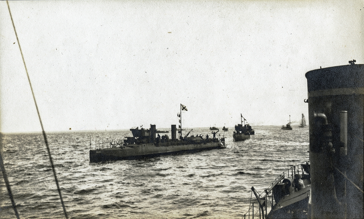 Svenska torpedbåtar, till synes med rysk artighetsflagg.