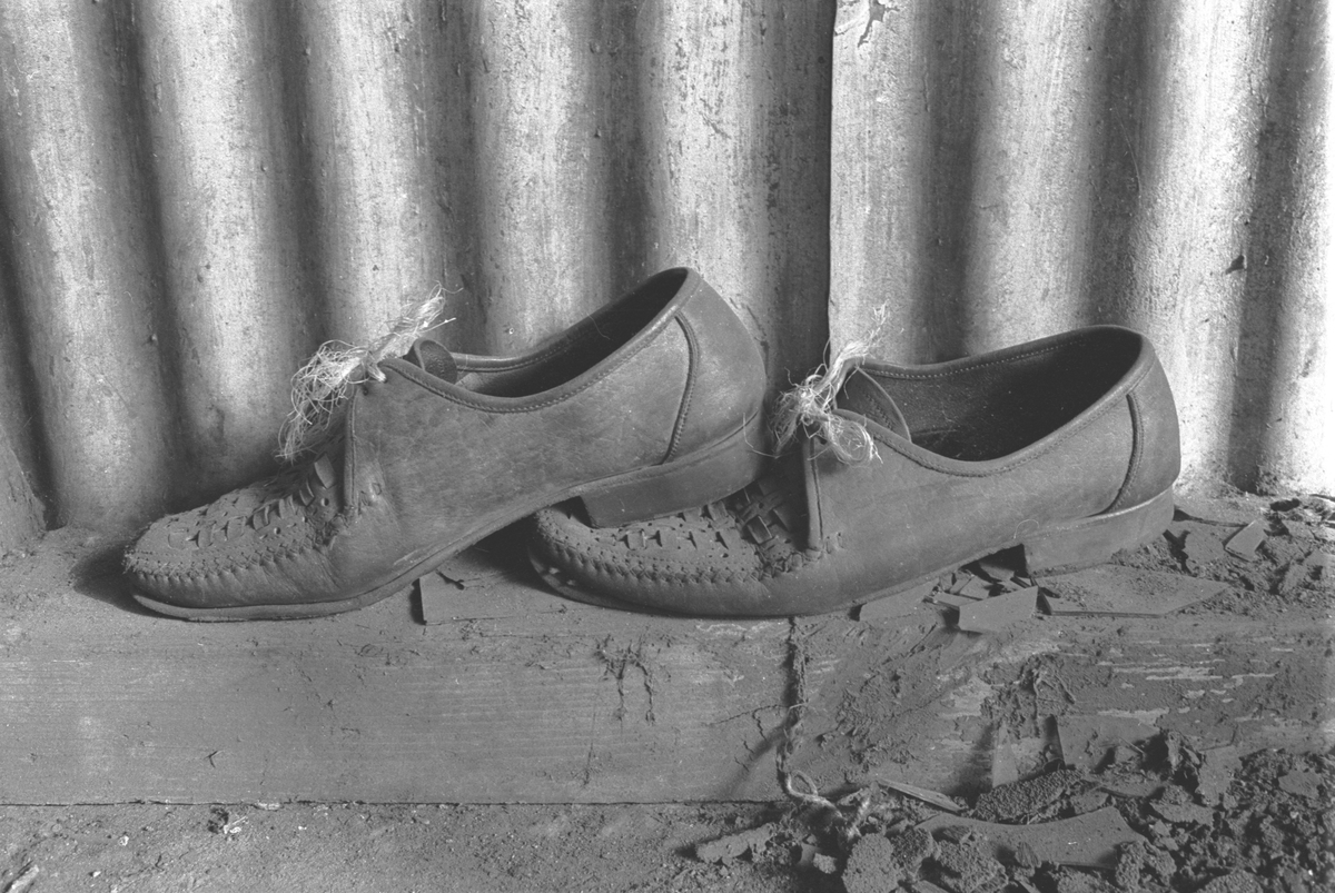 Skor snörda med snören, stora plåthallen på Ekensbergs varv 1969