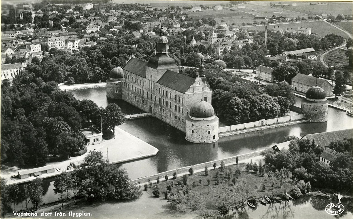 Vadstena slott från flygplan. Vykort inköpt juli 1945.