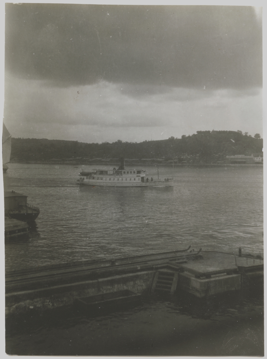 Skärgårdsångaren GUSTAFSBERG IV på väg in mot Stockholm mellan Beckholmen i förgrunden och Fåfängan i söder.