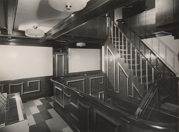Trapphuset sett från styrbords akterkant mot babords förkant.