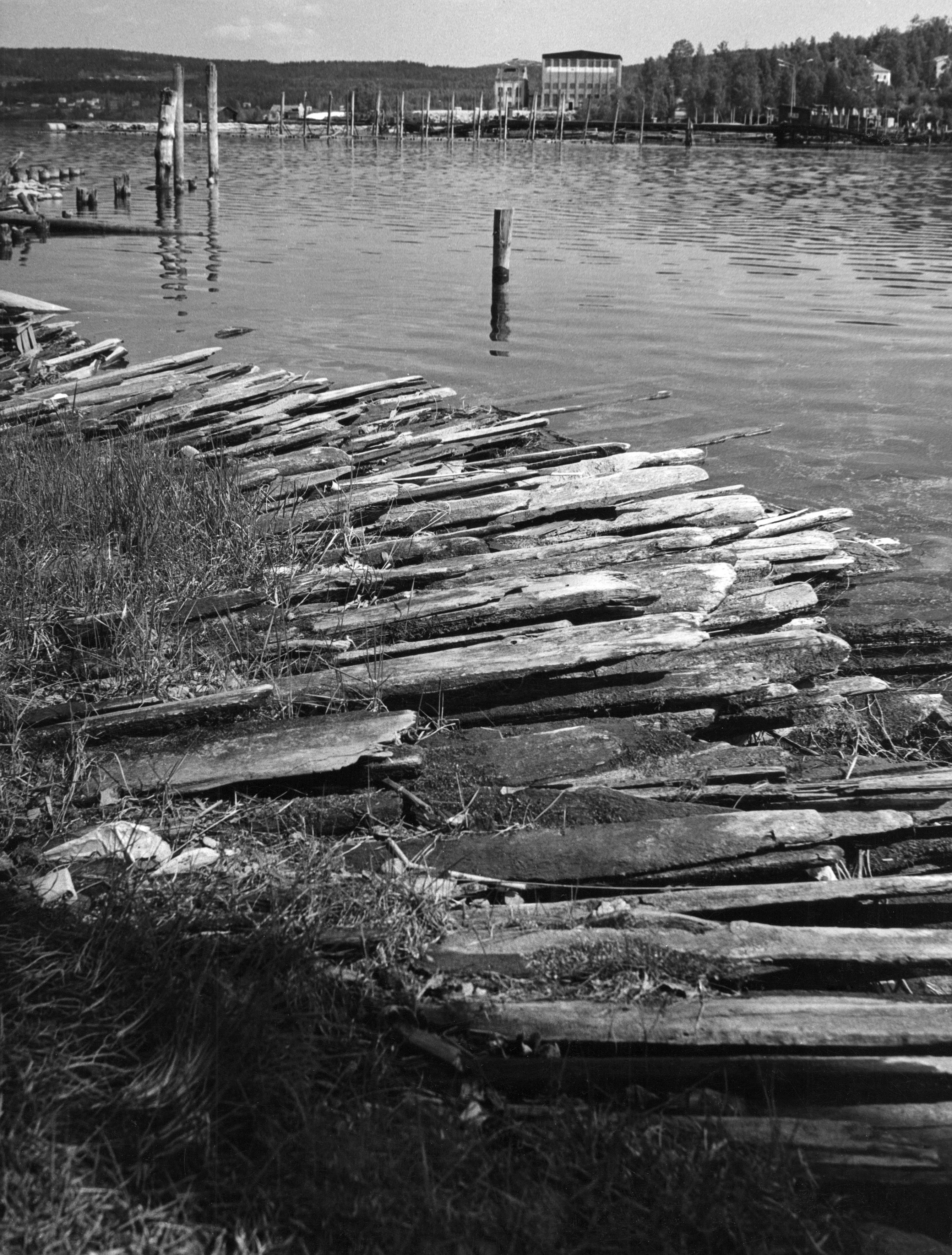Gamla kajen, i bakgrunden Nensjö nedlagda massafabrik. Bilden troligen från slutet av 1960-talet.