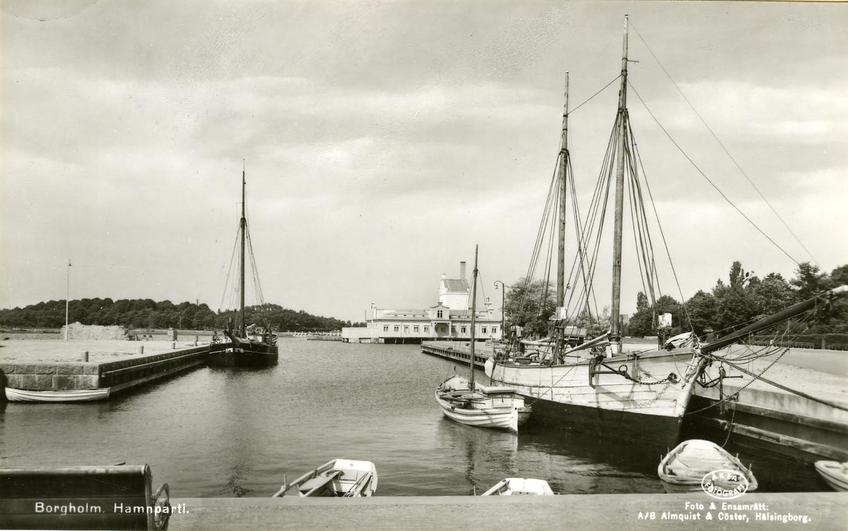 Borgholm, Hamnparti. Vykort, daterat juli 1946.