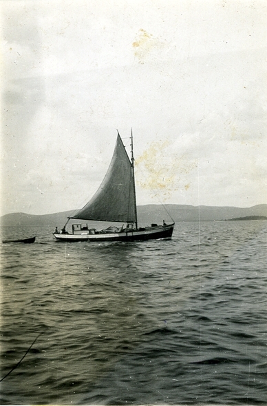 sandslupen Gärda, 11,77 reg.ton, byggd av Jonas Pettersson 1908. Fotot gåva av E.V. Pettersson, Lungön 1952.
