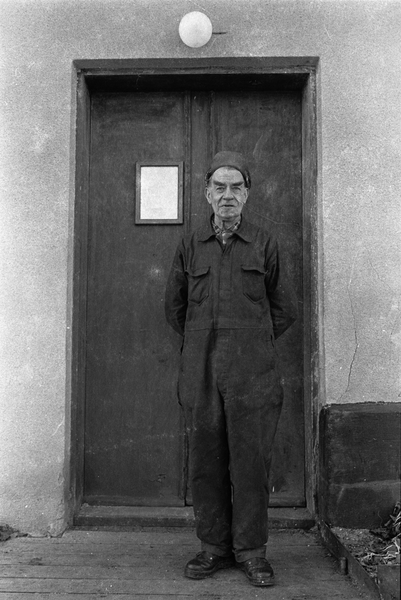 Ekensbergs varv; varvsarbetare framför "Mat och Omklädnadsrum för Grovarbetare Timmermän och Riggare" (se Fo259438AF-9)