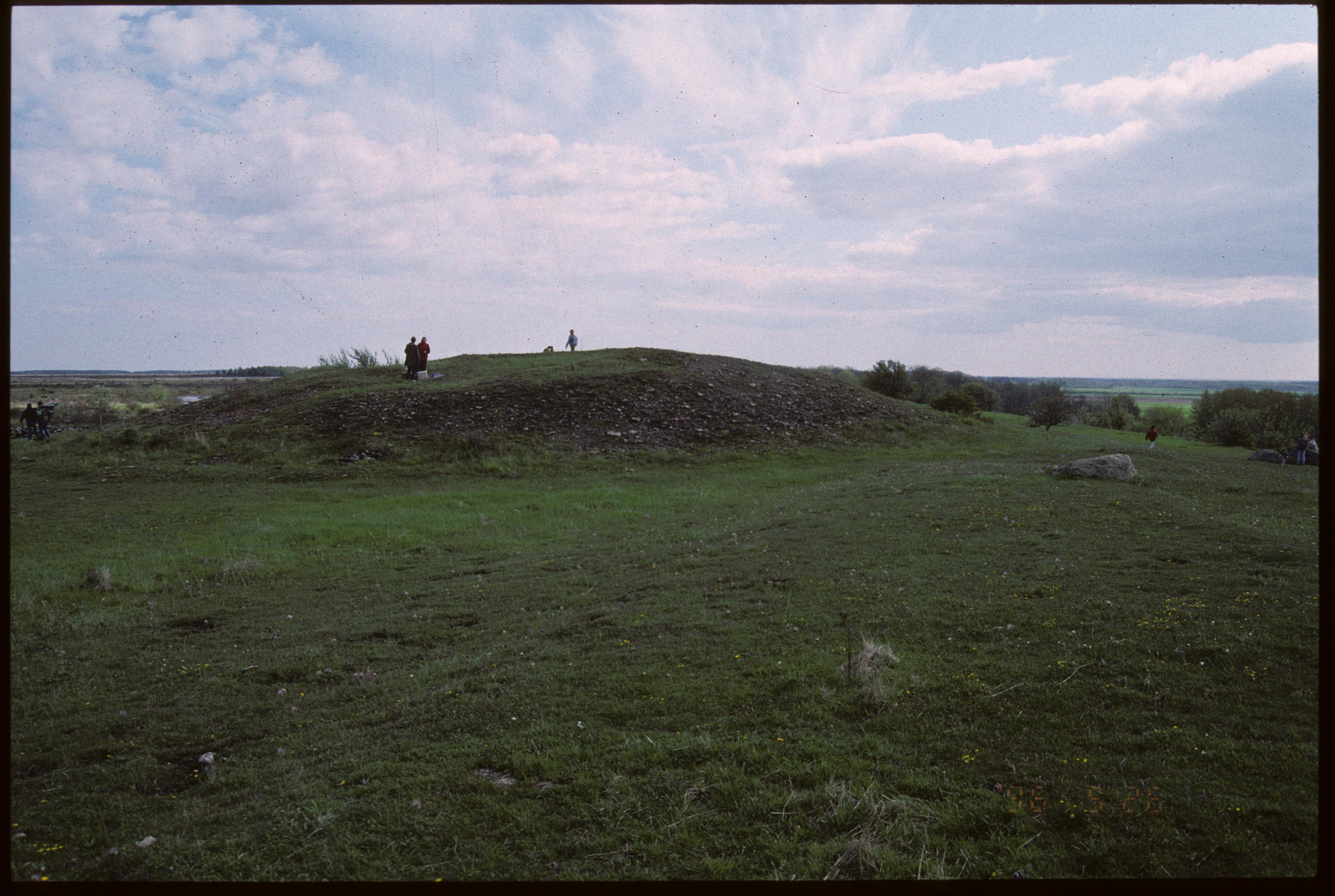Resmo 40:1. Mysinge hög, 45 m diam och 4 m h, belägen inom ett gravfält, 1200x50-60 m (N-S), bestående av 60 fornlämningar.
