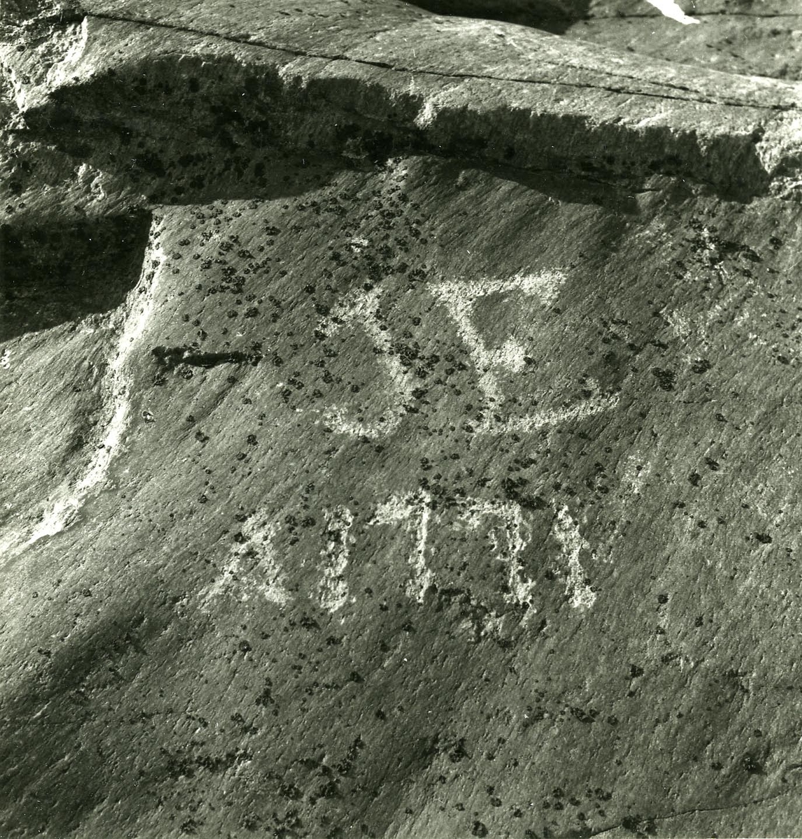 Kallerö. Inskription i berget vid gamla brygglämningar.