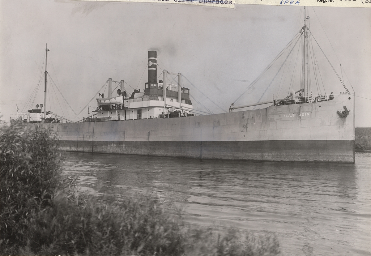 Lastångfartyget O.A. BRODIN. Torpederad NNV Orkneyöarna den 17 juli 1940, 3 personer omkomna.