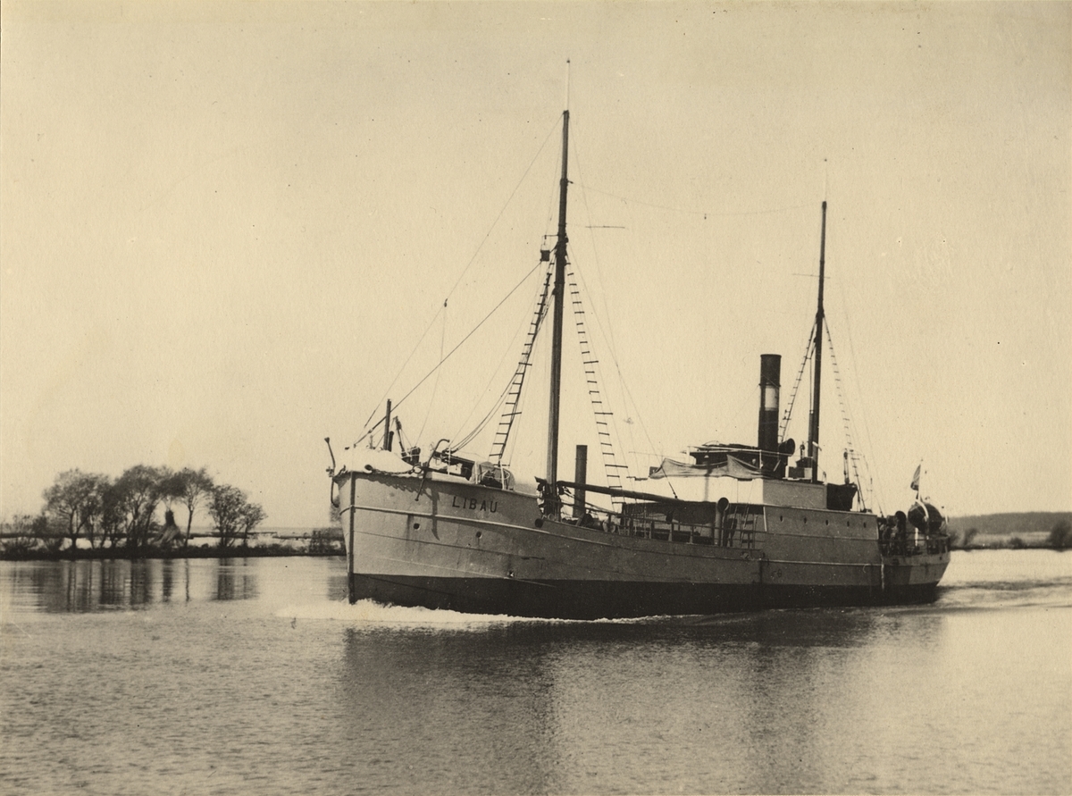 Lastångfartyget LIBAU av Malmö. Minsprängd i södra Östersjön den 29 juni 1944. Besättningen räddad.