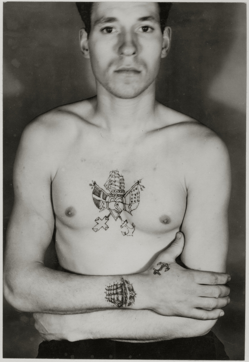 Ankaret på höger hand av Carl Gustafsson ("Tatueringskalle") i Göteborg 1929.