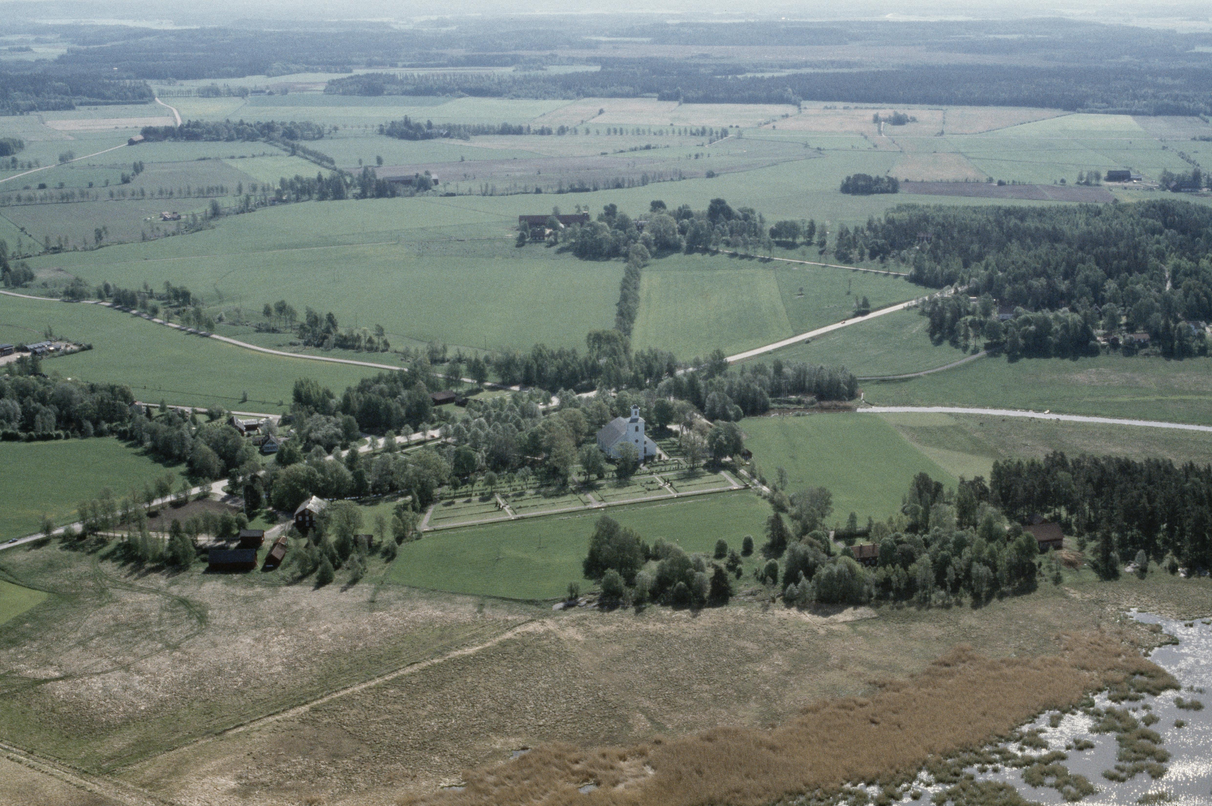 Väse kyrka vid ån Glumman och sjön Panken. Bilden är tagen mot (väderstreck): OSO