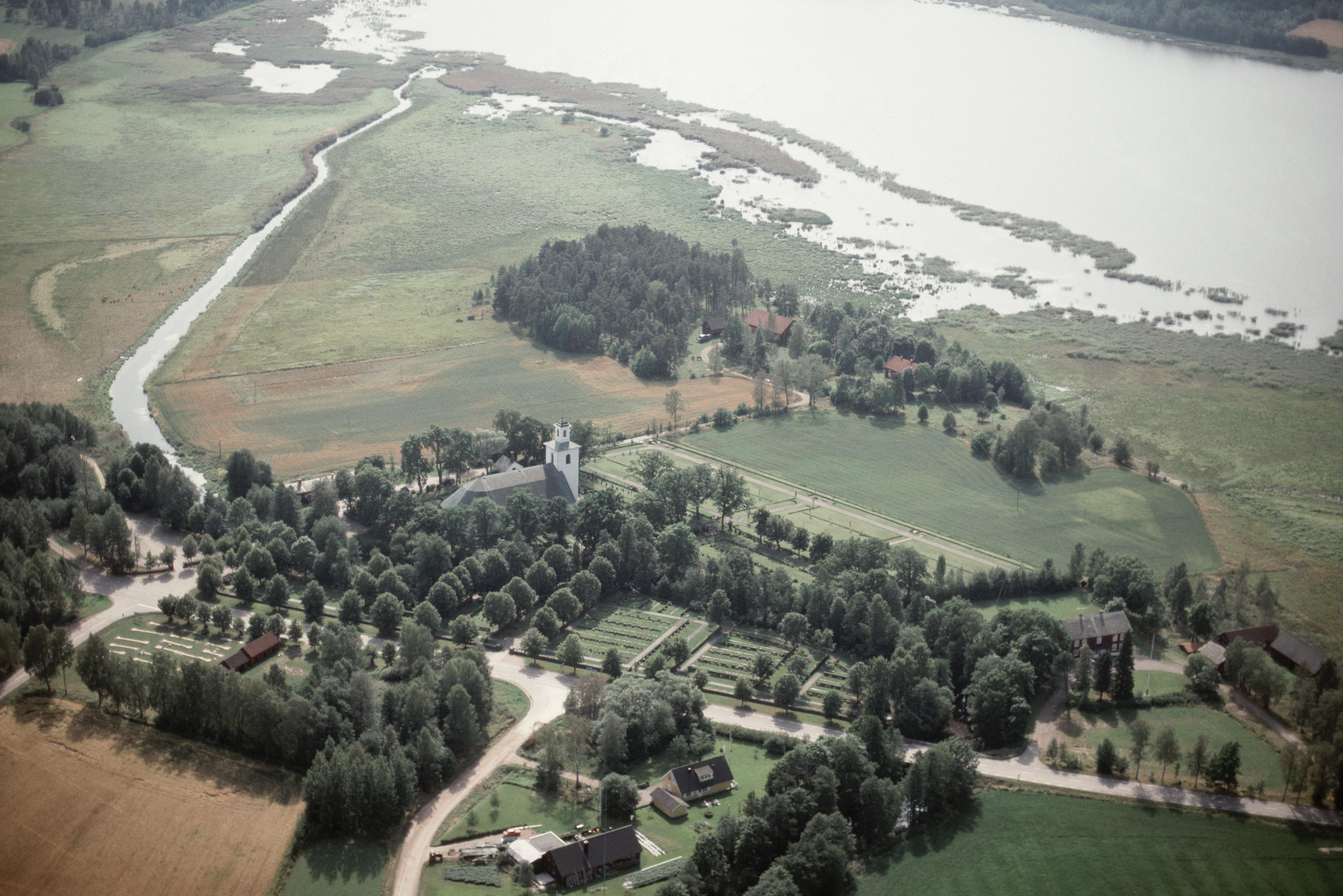 Väse kyrka. Ån Glummans utlopp i sjön Panken. Bilden är tagen mot (väderstreck): SV
