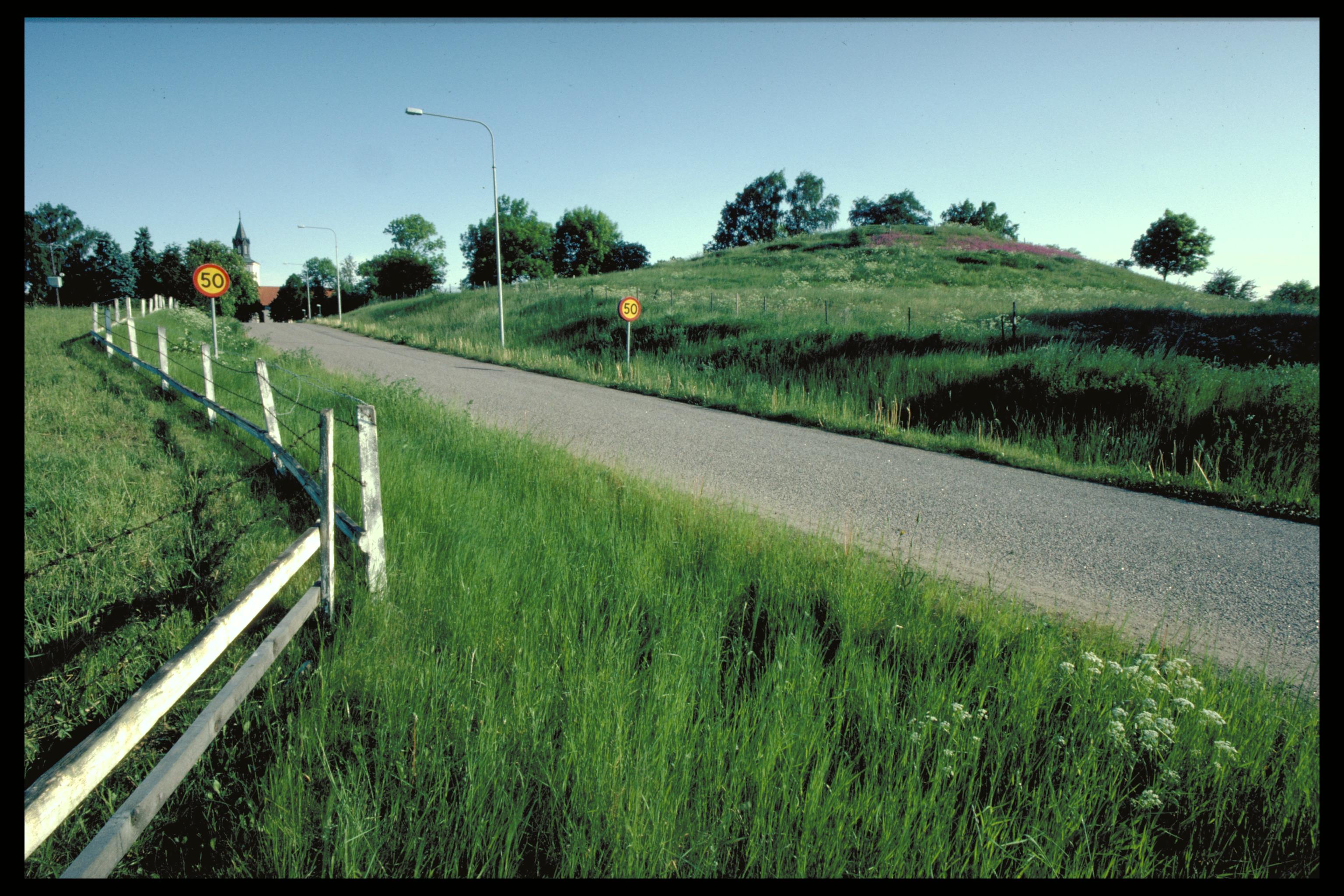 Gravhög i närheten av Ledbergs kyrka. Bilden troligen från början av 1980-talet.