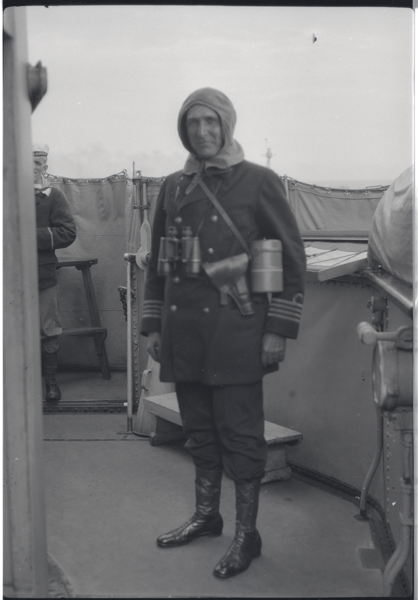 Fartygschefen på pansarskeppet SVERIGE kommendörkapten Mörner i full stridsutrustning