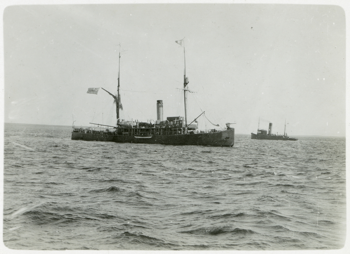 Den ryska kejserliga marinens isbrytare Taymyr samt ett till oidentifierat fartyg.
