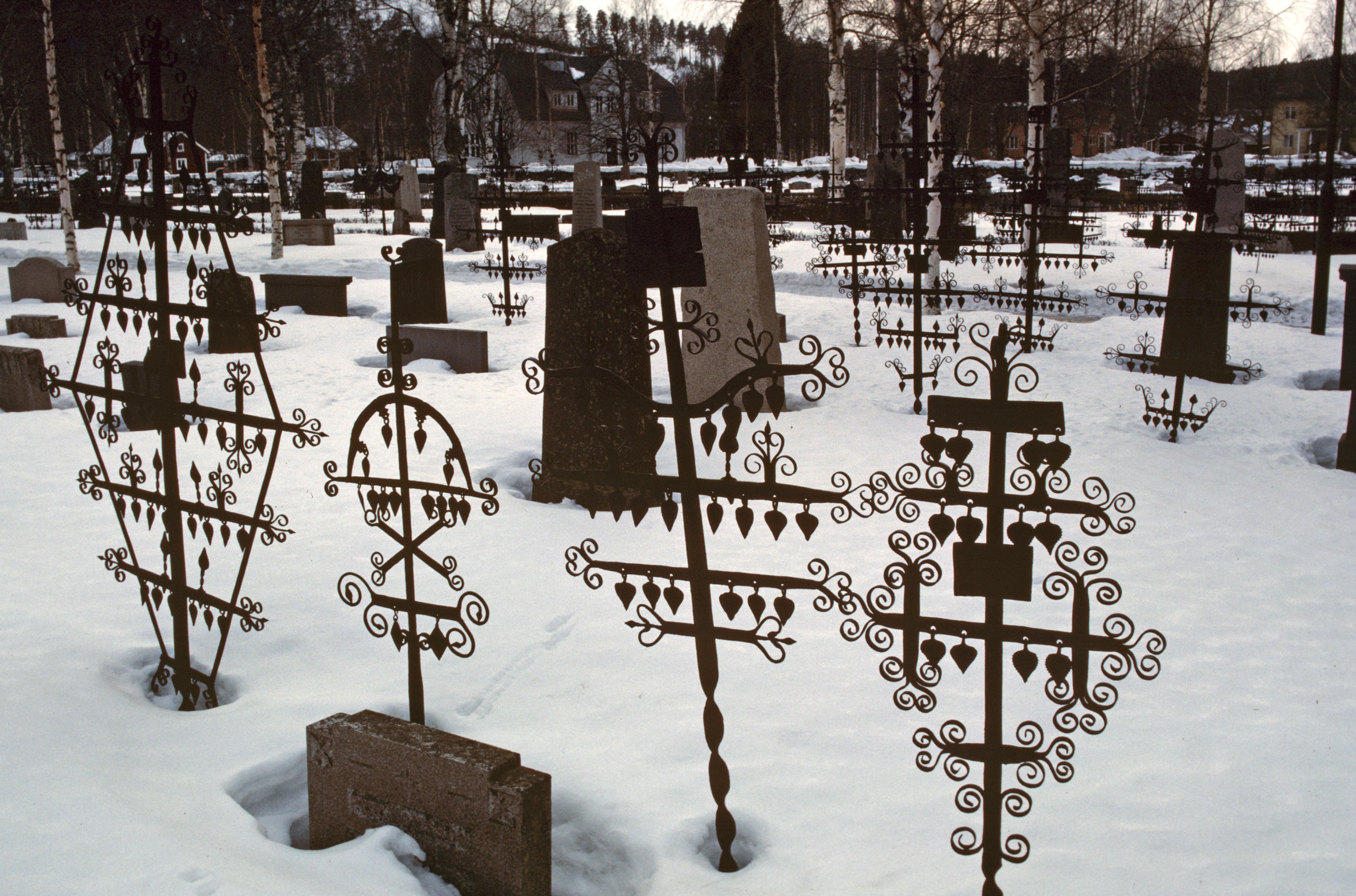 Kyrkogården, smideskors. Bilden troligen från mitten av 1980-talet.