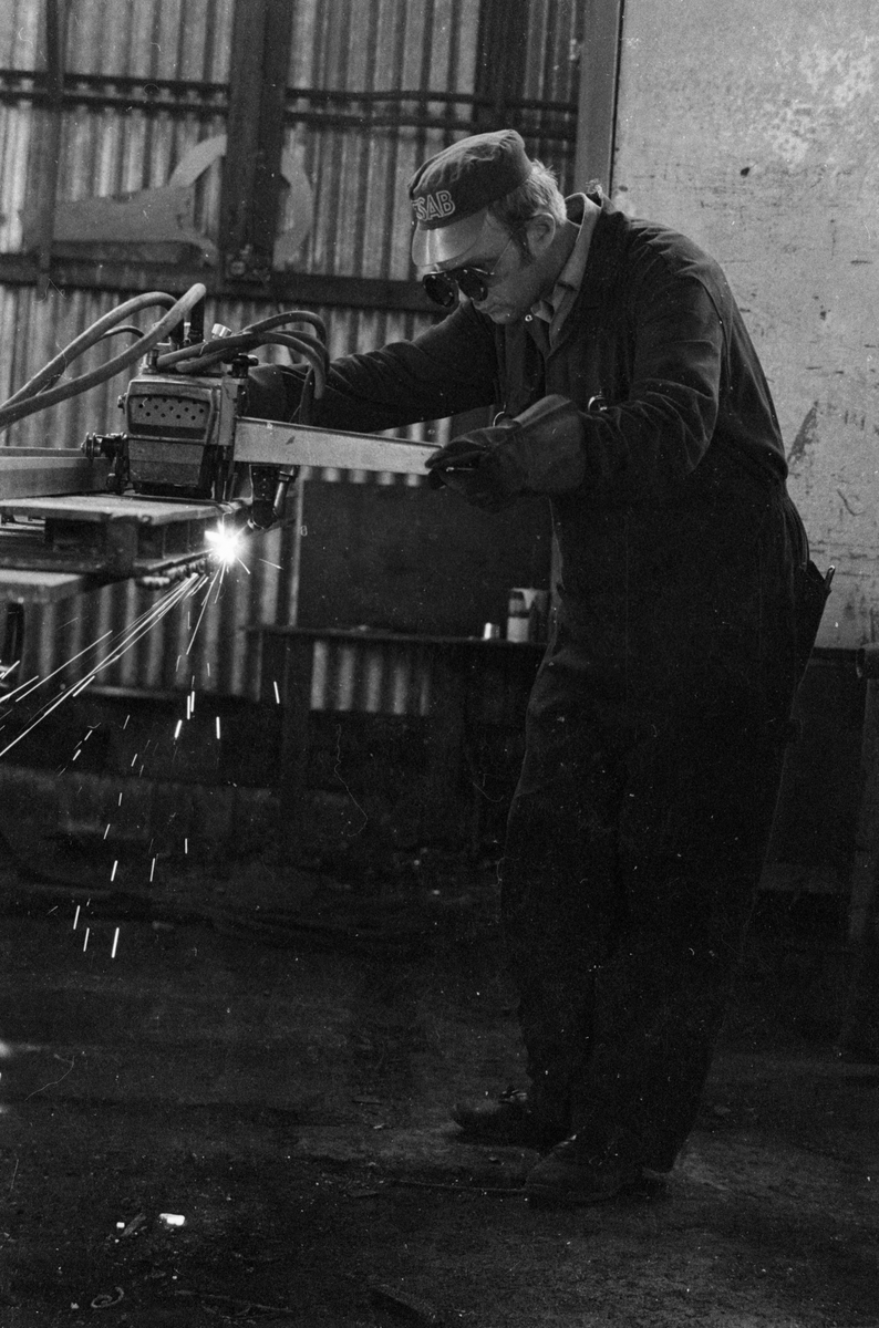 Ekensbergs varv; varvsbyggnad interiör; verkstadsarbetare vid maskin