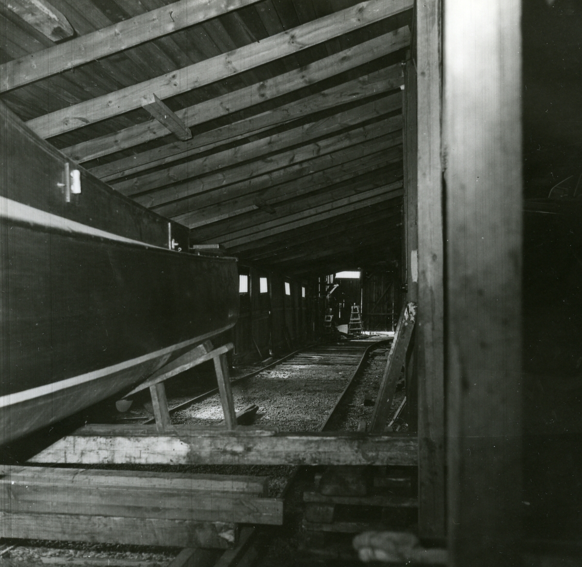 Lilla slipen i stora förvaringsskjulet. Längd 70 meter. vid lilla slipen fans inga förvaringsutrymmen vid sidan om. Båtarna fick stå uppallade på slipen under vintern.