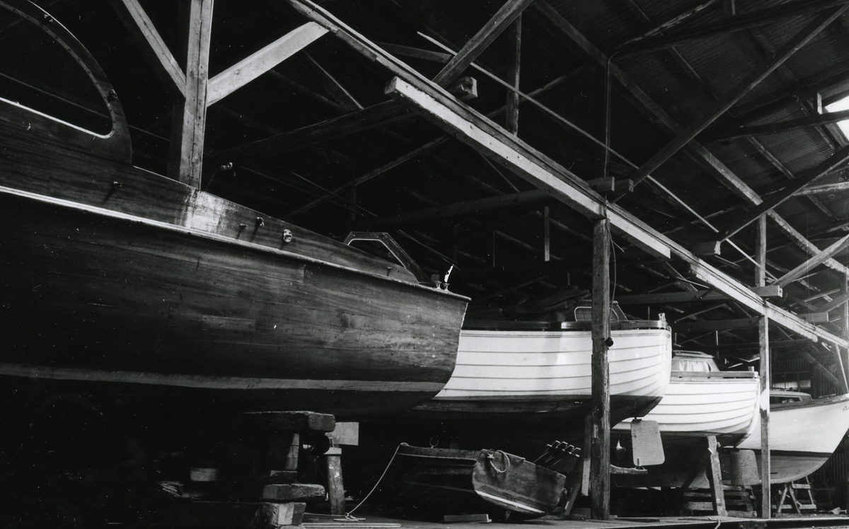 Båtarna ställdes upp vid sidan av stora slipen för vinterförvaring. från slipen till sina fack drogs de på såpade rännor.