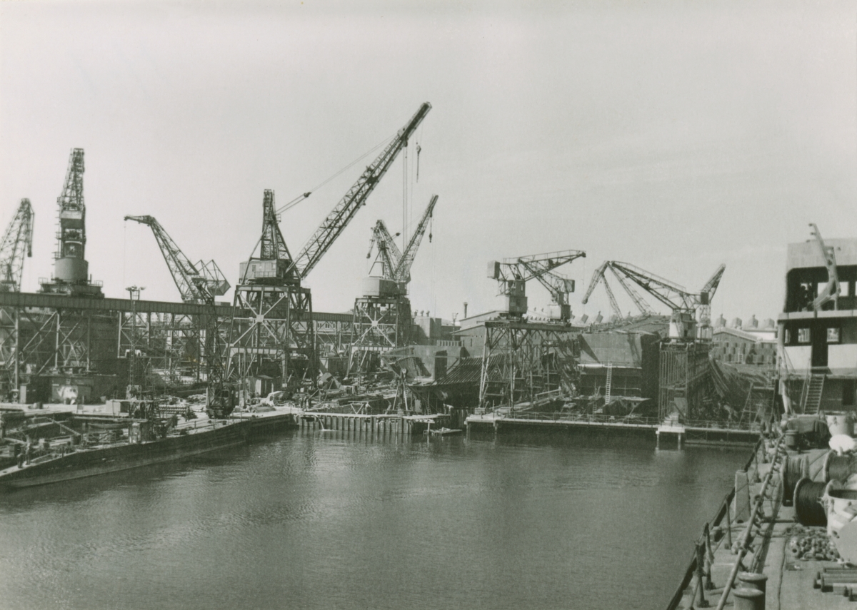 Titel: Bild från varvsområdet med fartyg under byggnad.